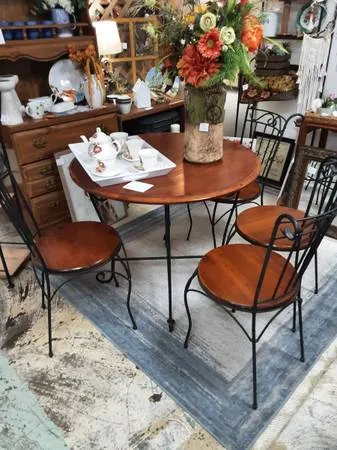 Vendor 191436 Round Table with 4-Chairs Rikers Fleas and furniture 407 N Old Wilderness Rd Nixa Mo 65714 phone 417-773-9826 Hours Monday-Saturday 10-6 Sunday 12-5