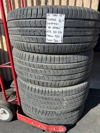 Call / Text 720-551-6907 This listing is for a set of 4 Tires This set is priced at $650 Pirelli Scorpion A/S 3 All Season Tires Size: 275/55 R 20, 275/55/20, P 275/55 R 20, 27555 R 20 Tread Depth: 10/32 DOT: 0625 Installation is available
