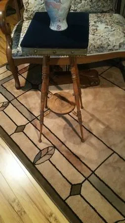 Antique RARE velvet top table 30 T x 131/2 W x 131/2 D in used very good condition. The top of table is 11 x 13 w with a brass trim piece. This is possibly a smoking table as the bottom shelf appears to indicate a humidor location. There is circle on top of velvet, under vase, from an object having set on table for a long while. Please, cash or Postal M 1 y Orders only. Pick-Up only. Please, serious inquiries only. Contact Patsy at 816-865-1783. Thanks for your interest. ...