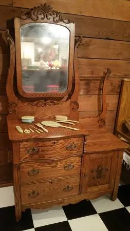 Antique 1900 solid Oak 50 quarter sawn oakHotel Wash Stand 41 W x 6 T x 181/2 Dwith step down 17 W x 181/2 Din very good to excellent condition. The mirror is original, with a cloudy appearance. Beautiful piece of furniture. $695.00 Firm. Please, cash or postal m 1 y order only. Please, serious inquiries only. Contact Patsy at 816-865-1783. Pick up only. I DO NOT DELIVER. Thanks for your interest.