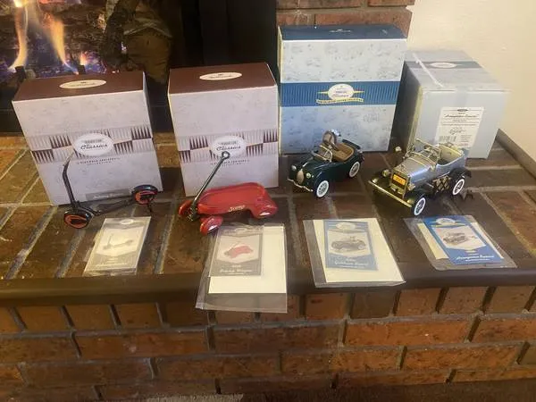 4 Hallmark Kiddie Car Limited Numbered Edition Collectibles Replica Miniature Kids Pedal Cars From the 1930 s - 1940 s Die-Cast Metal - Very detailed and extremely nice quality With all original boxes and paperwork Stored in the boxes since 1999 - never even displayed. New Condition. $30 cashfor all 4 Call or text Sam at 303-810-5189 I am in Centennial near County Line Road and Quebec St
