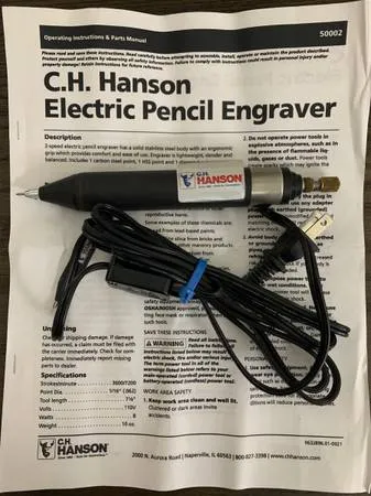 C. H. Hanson Electric 2-Speed Pencil Engraver Model 50002 SHIPPING NOT AVAILABLE 32211 770-427-6462