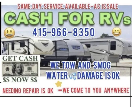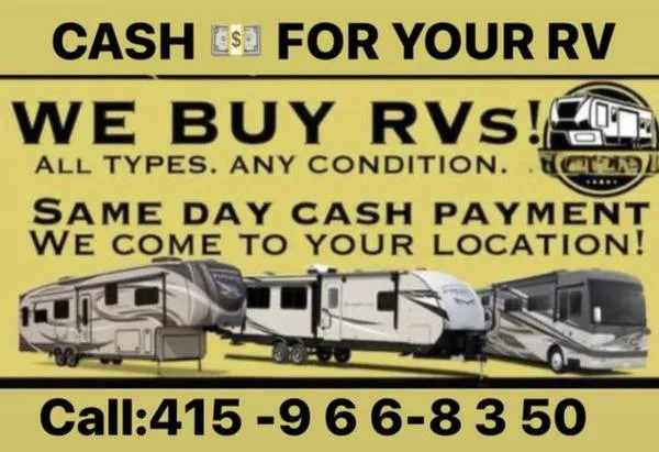 Hi👋 We pay cash for your RV 💵💰💵💰 We are looking to purchase your RV Motorhome fifth wheel travel trailer toy hauler diesel pusher, camper van AIRSTREAM Class A B C , gas or diesel van 415-966 -8350 ⭐️Any will be great 👍 ⭐️ We come to you anywhere ⭐️Any condition good or bad Needing work is ok ⭐️ Water damage leaks 💦 soft spot mold rust Needing roof or flooring mold electrical problems is ok we will buy it ⭐️ We take care of all paperwork DMV FEES registration we smog , no paperwork is ok we pay all fees ⭐️We Pay Cash ,, 💵 before Anything Leaves Your Possession. ⭐️ Same day service available we tow away ⭐️ 100 AS IS CONDITION SALE Please call or text any time for quote We will be very happy to hear from you ⭐️ 415-966-8350 Thank you 😊 L I S A 🌸 Wanted RV motorhome Toyhauler manor, Kit companion 🚎 1997971996961995951994941993 19992000200920192018201720162015201420132012201120102001932002200320042005200620072008 🚎 2020 pleaser way road trek track trek treck class a b c cash today for RV 1998199719961995199419931992 990001020304050606080910111213141516171819202020199898. plus Holiday rambler, pi 1 er, sandpiper, flair, flee 2 od, Coleman, tioga, itasca, mallard sprinter, nomad, southwind, jamboree, Dutchman, class b, road trek, roadtrek, pleasureway, pleasure way, 150025003500 v 8 v 6 v 10 e 350 Dutchmen, apolo, Apollo, tent trailer sea breeze, sea breeze, rialta, wildwood, sunny brook sunnybrook, sportsmen, tent trailer, tenttrailer, camp, camper, camper van, campervan, camping, e 250 e 150 f 150 f 250 f 350 sr 5 r 22 arctic fox, fun runner, highland ridge highlander, carson, Dutchman voltage rampage, stealth, excel rd td ts lite, Flee 2 od gearbox, dodge, light forest river sandstorm, desert fox, ragen, weekend warrior, pace shadow Shasta phoenix, kz venom, cedar creek, palomino puma, trailmanor, raptor jayco jayflight, chevy, Sundance, alpine, hemisphere, sierra, jay feather, cougar keyst 1 fuzion, white water retro, springdale, trailrider, carson 1997971996961995951994941993 19992000200920192018201720162015201420132012201120102001 2002200320042005200620072008 1998199719961995199419931992 9900010203040506060809101112131415161718192020201998 Work horse 8.1 turbo heavy duty suspension non running non runner Black water grey water heat heater Terry, wilderness, prowler, komfort, lazy daze, lazydaze, Winnebago, miniwinnie, j 🚎 Airstream Class A, Class B, Class C, Diesel Pusher, Travel Trailer, Toy Hauler, Bumper Pull, Camper Trailer, Mercedes Chassis, Sprinter Chassis, Tiffin, Allegro, Allegro cash Bus, Phaeton, Breeze, Monaco, Holiday wanted 5 th fifth 5 th where whel wheel needs work Rambler, Country Coach, Coachmen, Thor, Forest River, Jayco, Keyst 1, Winnebago, Itasca, Winnebago Tour, Itasca Meridian, Allegro, Mandalay, Sierra, Sandpiper, Wildwood, Airstream, Redwood, Heartland, Big Country, Big Horn, DRV, flagstaff super lite hideout coachman coachmen wild wood wildwood Durango gold FOREST RIVER ROGUE FOREST RIVER WILDWOOD X-LITE FOREST RIVER SABRE FOREST RIVER SANDSTORM KEYST 1 PREMIER Keyst 1 Springdale motorhome ,,, 19951996199719981999200020012002200320042005200620072008200920102011201220132014201520162017201920209596979899000102030405060708091011121314151617181920 Class A Class B Class C Coachmen ultra lite Mirada Mirada Select Pursuit Pursuit Precision Diesel Sportscoach SRS RD Freelander Leprechaun Orion Orion Traveler Diesel Prism Prism Elite Crossfit Diesel Galleria Class A Gas Class A Diesel Class C Entegra Coach Emblem Vision Reatta Esteem Odyssey Diesel Qwest Flee 2 od Bounder Flair Southwind Diesel Discovery Discovery LXE Pace Arrow Pace Arrow LXE Class C Jamboree Diesel Pulse Holiday rambler HR Class A Admiral Vacati 1 r Diesel Endeavor Endeavor XE Navigator Class C Diesel Prodigy Thor Motorcoach Class A A.C.E. Axis Challenger Hurricane Miramar Outlaw Toy Hauler Vegas Windsport Diesel Aria Palazzo Venetian Class C Chateau 4 Winds Outlaw Toy Hauler C Quantum Quantum SE Diesel Chateau Sprinter 4 Winds Sprinter Gemini Magnitude Quantum Sprinter Siesta Sprinter Synergy Sprinter Tiffin Class A Allegro Open Road Diesel Allegro Bus Allegro RED Phaeton Class C Diesel Wayfarer Winnebago Class A Adventurer Intent Vista Vista LX Diesel Forza Horizon Class C Minnie Winnie Outlook Diesel Fuse Navion View Vita Class B Travato Diesel Era Revel 4 x 4 Toyota dolphin Road trek Roadtrek Westfalia Dodge Chevy Chevrolet Toyota ford American coach Coachmen Rv Entegra Coach Flee 2 od coach Forest river rv Holiday rambler Jayco Monaco coach Newmar corporation Nexus Rv Thor motor coach Tiffin motorhomes Winnebago industries Dolphin Seabreeze motorhome Airstream Dutchmen Entegra coach Lazy daze Northwood Pacific coachworks Liberty coach Newell coach GeorgeTown GeorgieBoy Georgie boy Cruiser Rv Heartland Monaco Advanced Cool amphibious Keyst 14 winds 4 winds 4 winds weekender Reflection Shasta GULFSTREAM CONQUEST Journey Winnebago Sightseer Newmar Northern Star Dodge Xplorer dodge explorer THOR OUTLAW Leprechaun Orion diesel diesel pusher 4 x 4 cross fit Galleria Dutchmen Aliner Freelander Prism Prism Elite Sportscoach srs rd Pursuit Precision jamboree pulse prodigy chateau outlaw quantum sprinter magnitude quantum siesta synergy aria palazzo Venetian windsport Vegas Miramar hurricane challenger axis Springdale sportscoach Emblem vision Reatta Bounder Flair WINNEBAGO SUNOVA Southwind Discovery pace arrow vacati 1 r navigator pulse admiral windsport adventurer Minnie Winnie outlook Intent vista forza horizon navion view vita revel 4 x 4 era Gemini wayfarer roadtrek riadtrack Hr Thor forest river Gulf Stream coach keyst 1 dolphin Toyota dolphin Minnie Winnie American coach Monaco coach Monaco signature Monaco marquis diesel pusher cobra gmc comfort komfort suncrest sunrader kz-Rv livinlite livin-lite razor and road warrior desert fox feature lite feature-lite gear wagon Bigfoot 3000 motorhome sunline sun valley weekend warrior w