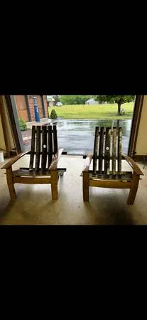 Adirondack Chairs made to order from Whiskey Barrel Staves. I use a Marine type finish on the chairs to endure the Elements. I break the Barrels down and build these as they are ordered. Selling for $375 Each. Call or text me at 434-534-4292