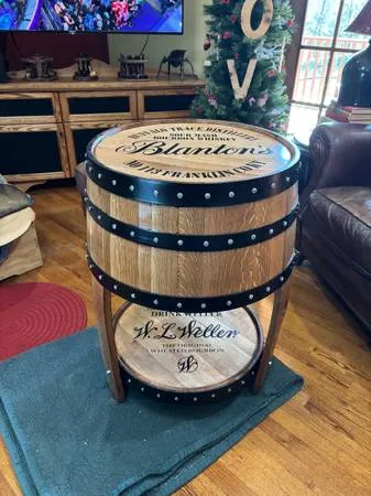 Authentic Oak Kentucky Bourbon Whiskey Barrel End Table. Measuring 22-24 inches tall 22 Inches wide 11 inches Deep. Call or text 434-534-4292
