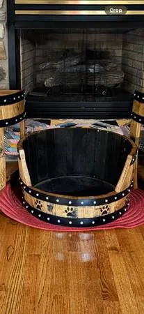 Pet Bed made from Authentic Oak Kentucky Bourbon Whiskey Barrel. All you need is the Bedding and it’s Perfect for Small to Medium Size Dog. Selling for $125 Call or Text 434-534-4292