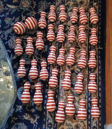 New with original tags. Mom purchased them 35 years ago or so. They were $12 EACH. WE ARE SELLING FOR $2 EACH. We have: 33 Bowling Pins 6 Tallsee more measurements in pics 2 Round Ballssee measurements in pics Perfect Condition. With original tags. Never used just stored away. Christmas ornaments, Holiday decor, Retail decor Cash only. Cell/ Text 303-968-4679 Pu Denver 80209 Washington Park