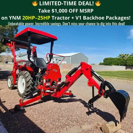 Arizona Tractor Sales Tried, Tested, and Tough—Just Like You Need. With 3 plus decades of experience in this industry, we take pride in being the exclusive company in the United Statesto our knowledgethat elevates used equipment to number 1 condition that is backed with our optional warranty. We allocate our time and resources to ensure the delivery of a high-quality product, aiming to prevent any unnecessary inconvenience on your part. Additionally, we dedicate ourselves to assisting customers in finding the ideal equipment for their specific needs. Purchase with confidence, knowing that our commitment ensures top-notch quality and customer satisfaction. Start your journey with Arizona Tractor Sales. WARRANTY AVAILABLE *** FINANCING AVAILABLE *** SHIPPING AVAILABLE *** LAYAWAY AVAILABLE Give us a call, we have many more tractors to choose from! We Are Rated A+ by the BBB 866-964-6618 YNM 161020 HP 4 WD Tractor We have several of these reconditi 1 d compact utility tractors available. These fully reconditi 1 d tractors have a powerful 20 hp, 3 cylinder diesel engine equipped with a brand new 4 ft loader and joystick controller. This means the loader will have all new steel, new 4 bucket, new hoses, new cylinders and new valve. This line of tractors will have new tires, new seat, new roll barROPS, new paint, new decals, new battery, new canopy, along with all filters and fluids changed. All of our reconditi 1 d 1610 tractors have what is called a power shuttle shift transmission. That means you can use this tractor either as a standard/gear drive or or you can use it in the shuttle mode which means you can go up/down the gears without using the clutch. VTEK/VTS 1 Backhoe: 5 Foot digging depth backhoe attachment. This backhoe will attach to any 3 point tractor that has a PTO with 20-80 HP. This brand NEW unit operates of its own independent hydraulic pump that connects to the tractors PTO, for this reason it also has its own hydraulic tank. This makes connecting the backhoe easy and clean with no hydraulic mess. This backhoe also comes with a adjustable thumb this can be used for multiple uses. Tractor Features * 20 HP * 3 CYLINDER DIESEL ENGINE * 4 WHEEL DRIVE * NEW TIRES * NEW 4 WIDE FRONT END LOADER * NEW PAINT & DECALS * NEW BATTERY * NEW ROLL BARROPS * NEW SEAT * NEW CANOPY * NEW FILTERS & FLUIDS * ALL STEEL CONSTRUCTION * 0 SMOG CONTROLS * NO DEFDIESEL EXHAUST FLUID * SHUTTLE SHIFT TRANSMISSION. THAT MEANS YOU CAN USE THIS TRACTOR EITHER AS A STANDARD/GEAR DRIVE OR YOU CAN USE IT IN THE SHUTTLE MODE WHICH MEANS YOU CAN GO UP/DOWN GEARS WITHOUT USING THE CLUTCH Our reconditi 1 d compact utility tractors are priced to save you m 1 y without sacrificing quality. With good credit, financing is available. Buy with confidence! For more information on YNM: https://www.youtube.com/watch?time_continue=29 v=rsX 0 C 414 SFs Arizona Tractor Sales Delivery Options! 866-964-6618 We sell most major brands of tractors including YNM tractors, Kubota tractors, John Deere tractors, Mahindra tractors, Kioti tractor dealer, Case tractors, New Holland tractors, Massey Ferguson tractors, Ford tractors, Deutz tractors, Case IH tractors, Farmall tractors, International Harvester tractors, Branson Tractors, LS tractors, Shibaura tractors, Claas Tractors, McCormick Tractors, Montana tractors, Nortrac tractors, Mahindra tractors, YNM tractors, Mitsubishi Tractors and many other fine tractor brands. We sell tractors for all Arizona locations – In addition, We Sell To California – New Mexico, Nevada. If you are looking for the best New Mexico Tractors contact us at - www.arizonatractorsales.com New Mexico Tractor, YNM of New Mexico, YNM Dealer, New Mexico Mahindra Dealer, Loader, Tractor Loader, Compact Utility, Tractor 4 WD, Tractor, Large Tractor, Mini Tractor, Utility Tractor, Tractor Supply, Lawn Tractor, Garden Tractor, tractor attachments, attachment, Tractor store, Tractor mower, Tractor and supply, Tractor values, Tractor Equipment, Tractor packages, Tractor specs. We Sell to all of New Mexico - California - Nevada - Arizona. If you are looking for the best of any New Mexico Tractors or New Mexico Tractors contact arizonatractorsales.com, YNM of New Mexico, YNM Dealer, New Mexico Mahindra Dealer, Loader, Tractor Loader, Compact Utility, Tractor 4 WD, Tractor, Large Tractor, Mini Tractor, Utility Tractor, Tractor Supply, Lawn Tractor, Garden Tractor, Tractor store, Tractor mower, Tractor, Tractor values, Tractor Equipment, Tractor packages ARIZONA TRACTORS SALES www.arizonatractorsales.com 866-964-6618 Backhoe Loader Excavator Loader Skid Steer Tractor Bobcat Case Caterpillar Daedong Ford Iseki JCB John Deere Kubota Lenar Mahindra Massy Ferguson Mitsubishi New Holland YNM dealer Track Loader 2 Wheel Track Loader Compact Utility Tractor 4 WD Tractor Large Tractor Mini Tractor Utility Tractor Tractor supply Lawn Tractor Garden Tractor Tractor attachments Tractor store Tractor mower Tractor and supply Tractor values Tractor equipment Tractor packages Tractor specs Buy tractor tractor cost az tractor Caterpillar, Deere, Komatsu, Bobcat, Kubota, Hitachi, Volvo, Kobelco, Case, Hyundai, Doosan Backhoe, Loaders, Skid Steers, Track Skid Steers, Wheel Skid Steers, Compact Track and Multi Terrain Loaders, Compactors, Crawler Dozers, Excavators, Motor Graders, Track Loaders, Wheel Dozers, Excavators, Wheel Loaders, and Wheel and Tractor-Scrapers Caterpillar, Case, Lull, Clark, Doosan, Daewoo, Genie, Komatsu, Linde, Jlg, Skytrak Skyjack, Hyster, Toyota, Nissan, Mitsubishi, Linde, Komatsu, Hyundai, Hyster, Genie, Doosan, Daewoo, Clark, Case, Viper, Yale, Pneumatic, Cushion, Dual, Drive, Gas, Diesel, Lpg, Dual Fuel Forklift, Telehander, Boom Lift, Man Lift, Scissor Lift, Tow Lift, Wheel Loader, Bucket Handler, 3000, 4000, 5000, 6000, 7000, 8000, 9000, 10000, 11000, 12000, 13000, 14000, 15000, 15500, Hi Lo, Lb, Kg, Aisle-master, Allis-chalmers, Artison, Atlet, Ausa, Autolift, Baker, Baoli, Barrett, Battioni & Pagani
