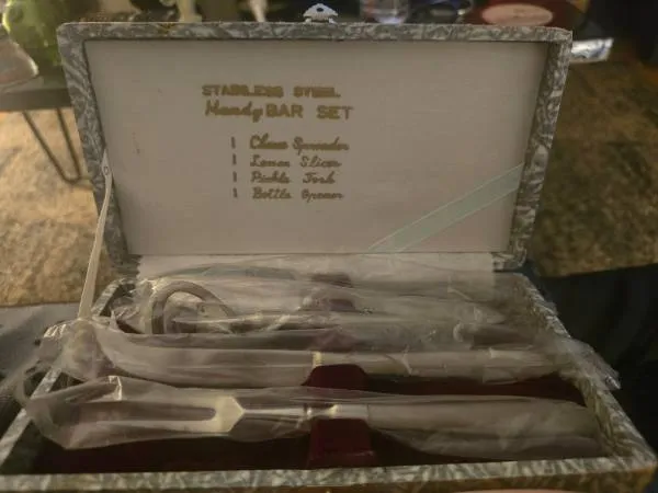 I have a new vintage montgomery ward 4 piece handy bar set. It is new and never been used. The utensils are made of stainless steel. Im asking $10 for the set. Please call or text Erin if interested at 720-334-4827