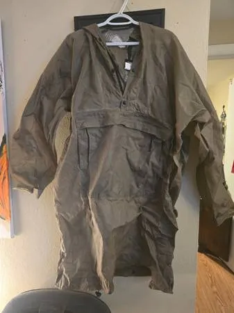 I have a vintage The North Face Nylon Half Zip Full Length packable rain coat. Great for fishing has a large zip up pocket in the front. It is a mens size L. Im asking $20.00 for it. Please call or text Erin if interested at 720-334-4827.