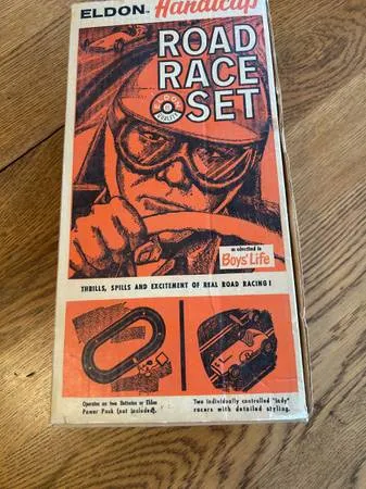 For Sale: 1963 Eldon Handicap road Race set in very nice original box. Comes with what you see in pictures including both very nice original cars, manual, and track. Untested and not sure complete. $25 cash only. Please call or text only at 712-830-5830