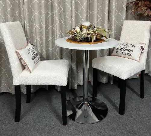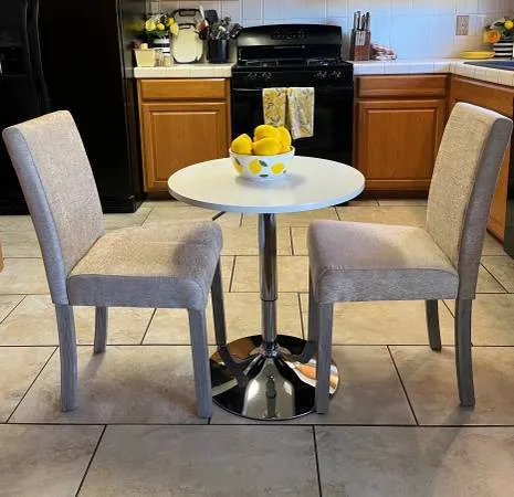 Small White Table 24 x 30 adjustable h 8 with 2 NEW Knubby White Dining Chairs, Great for a small space $125 Cash only call or text 775-378-8162 located Sparks Blvd/Baring