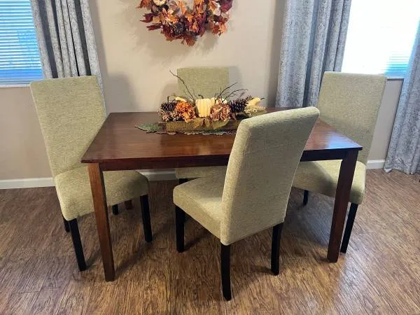 Really Nice Table 54 x 32 x 29 and 4 NEW Pear colored Dining Chairs $250 Cash only call or text 775-378-8162 Located in Sparks Boulevard/Baring additional chairs are available
