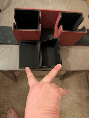 MAGIC THE GATHERING DOUBLE DECK BOXES, ABLE TO HOLD 200 SLEEVED CARDS WITH DICE OR TOKEN DRAWER. RANGING FROM BRANDS LIKE ULTIMATE GUARD, GAME GENIC & ULTRA PRO PICK FROM THESE COLORS: WHITE - ULTIMATE GUARD, PINK - GAME GENIC, GREEN - GAME GENIC, PURPLE - ULTIMATE GUARD, ORANGE - GAME GENIC, NAVY BLUE - ULTIMATE GUARD, DARK GREY - ULTIMATE GUARD & RED - ULTRA PRO ONLY HAVE 1 COLOR OF EACH BOX $15.00 EACH BOX 405-413-8671