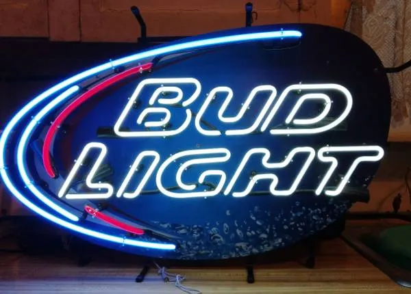 This neon Bud Light sign comes with red and white tubes on a blue background with a liquid splash design. You can hang it on your wall and standing. It is in excellent condition. 31 X 21 in. Overall. Call David at 817-357-1773 if interested so we can set an appointment and please leave a voice message if I dont answer right away. Correct cash only or credit card with proper ID and $10 fee and you pick up
