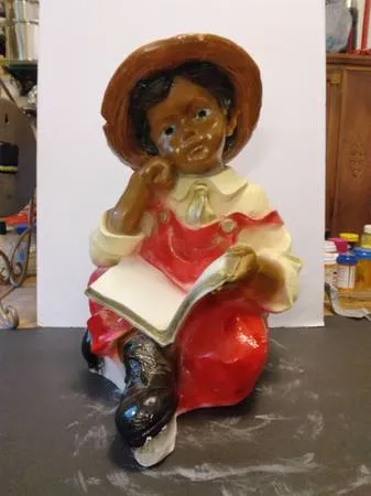 I do a lot of research on what I sell. I want my customers to know as much as possible about what I am selling, but sometimes its impossible and you try to find something identical or as close as you can. The picture from ebay is about as close as possible. The color and image is almost identical. This is a Ceramic pair of a black boy and girl reading a book. Call David at 817-357-1773 if interested so we can set an appointment and please leave a voice message if I dont answer right away. Cor...