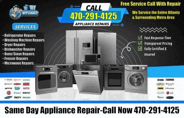 **Atlanta & Surrounding 1 Appliance Repair & Installlation Services You Can Trust!** Having trouble with your refrigerator, washer, or any appliance? Our certified and experienced technicians provide fast, reliable, and affordable repairs for all major appliances. Whether its your fridge not cooling, your dryer not drying, or your stove not heating, weve got you covered. Contact us today for same-day service and a 100 satisfaction guarantee! For Fast Reliable Appliance Repair & Installation Service 📞 Call Now:470-291-4125 Expert Appliance Repair & Installation Services: Refrigerator repair & Installation Freezer repair & Installation Oven repair & Installation Built-in Dishwasher repair & Installation Portable Dishwasher repair & Installation Washing Machine repair & Installation Dryer repair & Installation Garbage Disposal repair & Installation Microwave repair & Installation All Electronic appliances repair & Installation Much More.. **Why Choose Us:** Same Day Appliance Repair Service Highly Trained & Certified Appliance Technicians Fully Licensed, Insured On Time and Dependable Service Call Appointments The Most Affordable & Competitive Rates Written Estimates - No Hidden Fees All Work Guaranteed Servicing the entire Atlanta & Surrounding Metro Area For Fast Reliable Appliance Repair & Installation Service 📞 Call Now:470-291-4125 Dont let a broken appliance disrupt your daily routine. Contact us today and get your appliances back in working order! We Service All Brands of Appliances Including: Westinghouse, GE, Maytag, Kenmore, Whirlpool, Frigidaire, Monogram, Samsung, Sears, LG, Sub 0, Roper, Tappan, Admiral, Amana, Thermador, Viking, Bosch,Wolf, Kitchen Aid