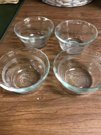 Have a set of 4 small Pyrex glass bowls. Great for fruit, pudding, or small portions. Cash only for the set. We are a non smoking home and live near Arapahoe Rd and Parker Rd. 720-470-9911.