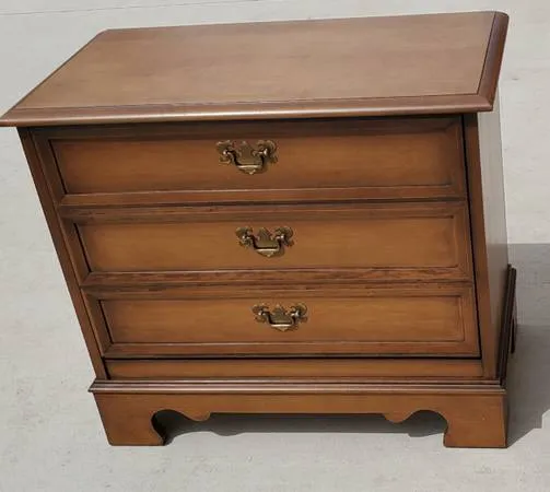 Vinyl Record Buffs!! This record cabinet was made by the Lane Company and is in like new condition. It was probably made in the late 60 s or early 70 s and is a beautiful piece of furniture that held many vinyl records. The labels on the door are in excellent condition also. This looks like a little 3 drawer cabinet but when you open the top pull the whole front comes down revealing slots for the records. The original Lane tags are still with the cabinet. Since the vinyl records are making a comeback this cabinet would be an excellent place to store them. The cabinet measures 30 wide x 16 deep x 26 high. If interested please call Sharon at 719-488-3778 which is a land line number so wont accept texts. I will delete this ad as soon as it is sold. Check out my other listings on the more ads by this user box. Cash Only! Thanks for looking!