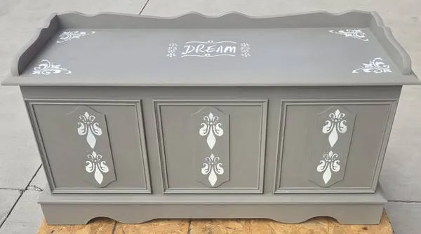 This chest has been painted with a French Linen color chalk paint and stenciled with a white chalk paint and sprayed with a polyurethane finish for maximum protection. It has a cedar veneer lining in it and it has magnetic latches for opening and closing easily. The chest measures 40 wide x 16 deep x 20 high. It could be used for extra storage for blankets in a bedroom or anywhere you need storage. If interested call Sharon at 719-488-3778. This is a landline so will not receive texts. Check out my other listings by clicking on the more ads by this user box on the right side of the text below the map. I do not respond to texts or emails and will delete this ad as soon as it is sold. Cash Only Please! Thanks for looking!