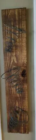 This wine rack has been made with repurposed pallet wood and 3 vintage bed springs. The rack measures 30 long and 5.5 wide. We can take orders for special sizes. A unique presentation for your favorite wine bottles. A great idea for a house warming gift or wedding gift. If interested please call Sharon at 719-488-3778 which is a land line number so wont accept texts. I will delete this ad as soon as it is sold. Check out my other listings on the more ads by this user box. Cash Only! Thanks for looking!