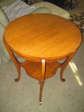 Beautiful solid oak side table. Top is 2 feet in diameter. Not perfect but nice. Price is firm. Call Kevin @ 720-980-9759 thanks. will not reply to text or emails.--furniture--antique--