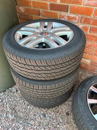 Great condition Volkswagen rims and tires 205/65/16 size 2056516 Came off of a 2013 Volkswagen Jetta, but will fit any Volkswagen, Audi, Porsche with the same lug pattern, possibly Passat golf GTI a 6 a 4 etc 3 of the wheels are Volkswagen brand with tires and great condition with low miles and 1 rim is the same size with the same tire size just different wheel Everything for only $200 If interested please contact me at 719-329-4584 Rim wheel tire spare