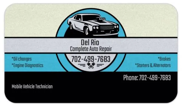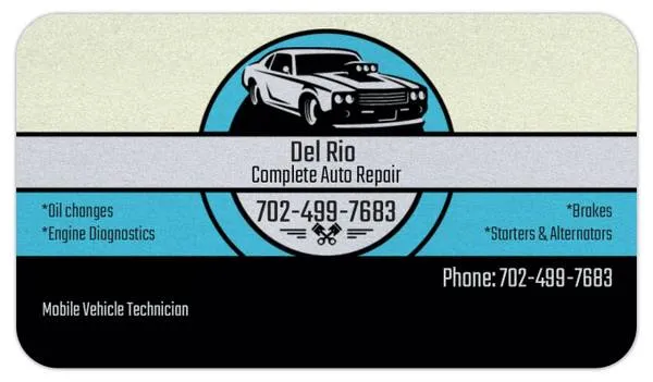 We here at Del Rio complete auto repair strive to give the customer the best auto repair experience. We perform repairs at the comfort of your home! Now offering roadside assistance. We are happy to serve the greater Las Vegas valley, Henderson, Summerlin, and Boulder city areas. We accept all credit & debit cards including Apple pay. We also accept cash, cashapp, and zelle. Common Mobile repairs Include but not limited to: • Fuel Pumps • Alternators and Belts • Water pumps • Oil Pumps & Timing Chains • Struts and Shocks • Brakes, rotors, calipers, brake leaks • Electricalshorts, new installation • Oil change, and/or tune ups • Radiators, hoses, flushes A/C service and repair. • Window regulators • Starters • CV Axles • Carburetors • Wheel Speed sensors • No Start Conditions • Battery Replacement • Oxygen sensors Now offering: Transmission Removal and replacement, Head gaskets, and Engine removal and replacements. If you dont see your car repair listed give us a call we can diagnose your vehicle today! Dont deal with flakes! Dont deal with fakes! 15 years of experience We are not all show, We have boots on the ground ready to go! Domestic or ImportAsian import and European imports We are specially trained and authorized individuals. Call or Text today! 702-499-7683 Satisfaction Guaranteed or your m 1 y back! i 3