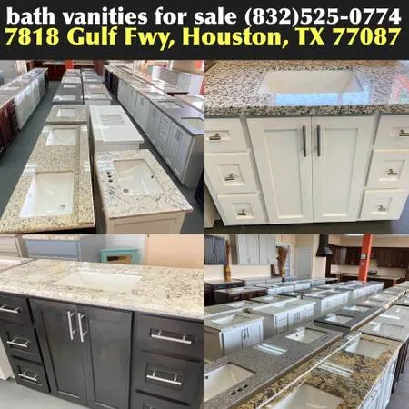 BATHROOM VANITIES- BATH CABINET -BATHROOM CABINETS OPEN MONDAY TO SATURDAY 7818 GULF FREEWAY HOUSTON TEXAS 77017 CALL ME 832-525-0774 ARE YOU LOOKING FOR A NICE CUSTOM-MADE AND GOOD-QUALITY VANITY? WE HAVE THE RIGHT 1 FOR YOU THAT WILL FIT YOU AND YOUR BUDGET COME TO OUR SHOWROOM AND SEE MORE THAN 30 CABINETS ON DIFFERENT COLORS AND MODELS SOLID WOOD CABINETS AND GRANITE COUNTERTOP SINK OF PORCELAIN OF DIFFERENT SIZES COUNTERTOP INCLUDES BACKSPLASH CABINETS STARTING PRICES FROM $ 600 TO $ 4000 SOLID WOOD CABINETS REAL GRANITE AND QUARTZ COUNTERTOP DRAWERS AND DOORS SOFT CLOSING DOUBLE SINK CABINETS AT A LOW PRICE CALL US AND ASK FOR SPECIAL PRICES NEGOTIABLE PRICES ______________________________________________________________________ LLAMANOS O VISITANOS EN NUESTRA SALA DE VENTAS! 7818 GULF FREEWAY HOUSTON TEXAS 77017 TENEMOS EL VANITY PERFECTO PARA TI NOS AJUSTAMOS A TU PRESUPUESTO SOMOS FABRICANTES! GABINETES HECHOS A MANO MADERA SOLIDA, PINTURA DE CALIDAD PUERTAS Y CAJ 1 S CON CERRADO LENTO LO HACEMOS A TU GUSTO Y MEDIDA