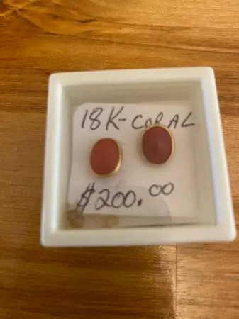 18 K and coral post earrings, $200.00, offer ? 505-319-9358