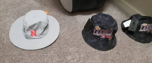 New 2 NBA Lakers sun hat tie dye purple black Or Nebraska Sun hat silver $20 each 402-383-3910