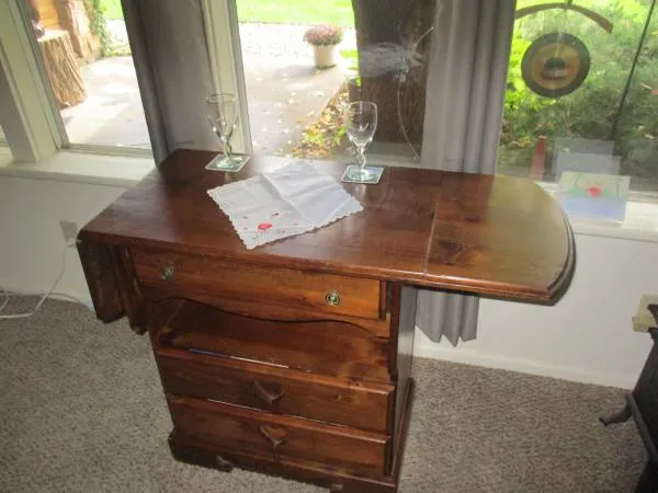 Antique Wood Chest of Drawers 2 Spring Leafs go up or down to make a Handy TV Stand! Please call Mic 808-634-3850 Hawaii Cell, but live locally in Durango.CO NOTE When Spring Leafs up 46 Long When Spring Leafs Down 271/2 Price Negotiable!