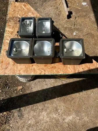 I HAVE FOR SALE 5 OUTDOOR HALOGEN FLOOD LIGHTS IN EXCELLENT CONDITION $25.00 EACH OR$100.00 FOR ALL 5,THAT WERE USED LIGHTING SUB DIVISION ENTRY AND FLAGS CALL 816-668-3922 THANKS DAVId