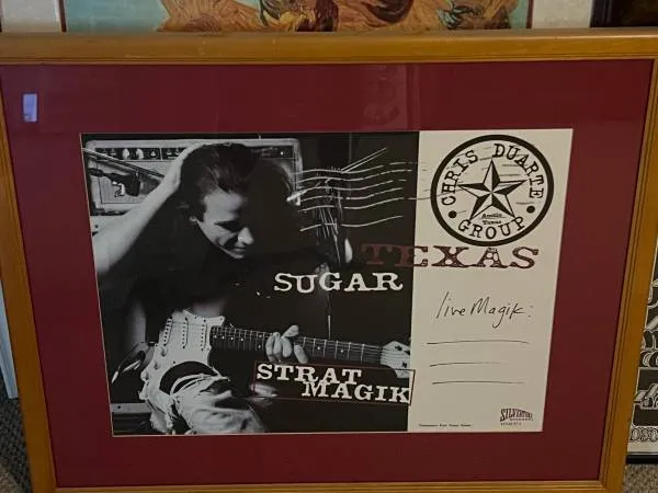 Chris Duarte group promo poster Large 27 x 33 pro framed hung at the roost nightclub. It is signed on the back by Chris very nice piece 512-539-7892. I have tons of other Austin collectibles if you’re interested in that sort of thing.