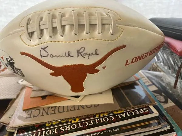 This is a genuine Darrell Royal signed football. 512-539-7892.