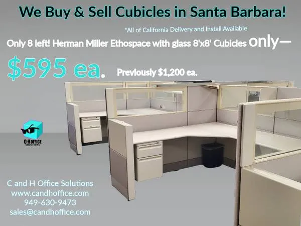 ๐ก Brand new Herman Miller Ethospace with glass costs $4,000 per station. Most used dealers resell the same workstations for $1,000$1,300 each. Our InventorySanta Barbara: $595 ea. 8 x 6 footprint 8 available 53 panels for privacy + open-air feel Glass stackers for natural light Beltline electrical for convenient power & data Includes 1 hanging pedestal & 1 lateral file Perfect for startups, real estate teams, creative agencies, and professional offices across Santa Barbara County. Professional delivery & installation available throughout California. ๐ Call/Text: 949-630-9473 ๐ Visit: www.candhoffice.com โ๏ธ Email: salesatcandhoffice.com Keywords: Herman Miller, Ethospace, office cubicles, workstations, office furniture, Santa Barbara