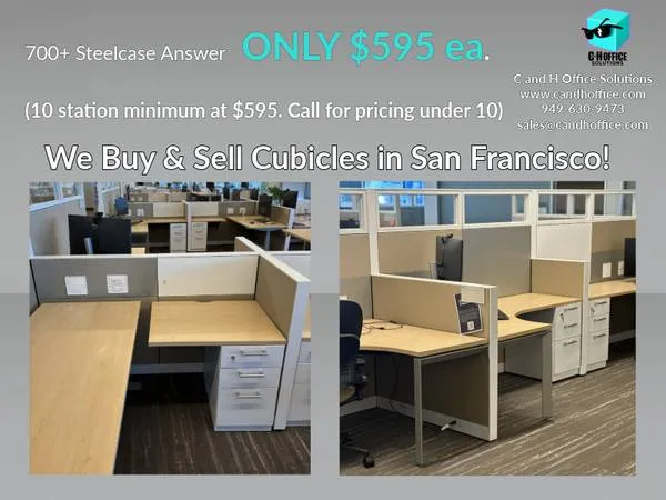 Large matching set of Steelcase Answer workstations. Mix of 66 and 5.56 with 42 low walls and 65 aisle spines; about 30 or morewith glass. Power/data tiles, pedestals, L-desks. Professionally pre-ownedโcleaned, inspected, reconfigured to your floor plan. Multiple sections across 5 floors for phased installs. Qty: 700 stationsvolume pricing available Services: Space planning/CAD โข Delivery โข Installation โข Decommission/Buyback C and H Office Solutions ๐ 949-630-9473 โ๏ธ salesatcandhoffice.com ๐ www.candhoffice.com Keywords: Steelcase Answer, cubicles, used cubicles, 6 x 6, 5.5 x 6, 42 inch, 65 inch, glass tiles, office furniture, workstations, Santa Barbara, California