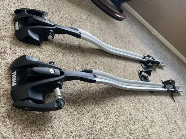 Thule 561 Outride Disk Brake Fork mount Cycle carrier. In perfect condition only used a few times.Original price over 200$ each. comes with 6 core locks and 4 keys.currently 8 pk lock set at REI is 110$Everything works perfect no issues. Will mount to Wingbar, Aerobar, squarer, or Aluminum bars. Has clearance for disk brake mount. If this Ad is posted trays are available. Cash, will not deliver. Thanks Chris 720-987-0720. Heres a review of the install and use https://youtu.be/HJklKmNlSu 0 si=5 dQOEtGl 05 VPm 9 pC Yakima, Thule, Kuat, Bike tray, mount, rack, mountain bike, car mount, roof mount tray