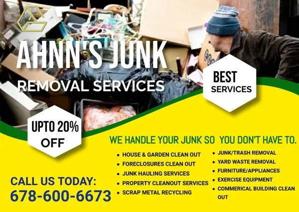 Professional Junk Removal Services โ Fast, Reliable, and Eco-Friendly Looking for dependable junk removal services with same-day availability? Look no further. We provide professional, efficient, and eco-conscious junk removal solutions tailored to both residential and commercial clients across Atlanta. ๐ Call Us Today:678-600-6673 ๐ฎ JUNK / TRASH REMOVAL SAME DAY ๐ฎ โฌ๏ธ Junk Removal Easy As 1-2-3 โฌ๏ธ โ Residential or commercial โ Single item/small load or big loads โ Load/Unload pods, uhuals, ect โ Full packing โ House hold furniture โ Appliance removal/fridge/stove/microwave โ Couch/sofa removal โ Mattress removal โ Carpet removal โ Property clean outs โ Debris removal โ Estate clean outs โ Deck demolition/ removal โ Wall demolition/ removal โ Construction debris removal โ MUCH MORE..... Why Choose Our Services? Eco-Friendly Disposal โ We recycle and donate usable items, helping reduce landfill waste and support local communities. Prompt & Reliable โ Our trained professionals show up on time and complete every job efficiently. Transparent Pricing โ No hidden fees. Youโll receive a clear, upfront quote before any work begins. Flexible Scheduling โ Offering same-day and weekend services to fit your busy schedule. Fully Licensed & Insured โ Rest easy knowing your property is protected. Affordable Rates โ Clear pricing, no hidden fees. All Types of Junk โ Furniture, appliances, yard waste, construction debris, and more! Get rid of unwanted items in no time! Call now 678-600-6673 for a clean, clutter-free space today!