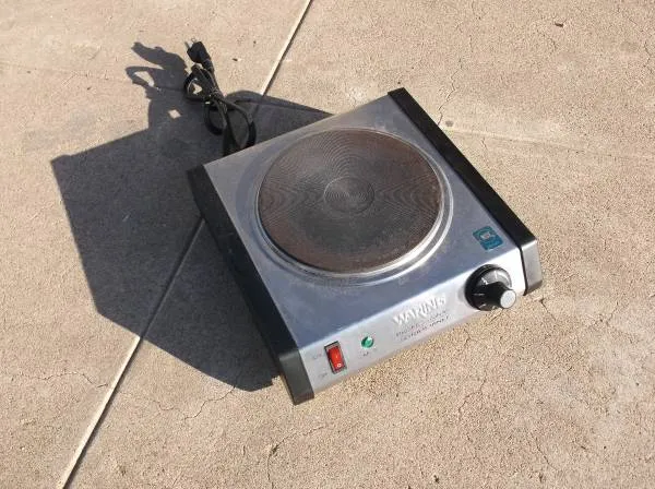 Works great ! This is commercial WARING model WEB 300 ideal for restaurant NSF approved! Burner diameter is 7-1/2 inches. Cost $160.00 new. ONLY $50 to GOOD HOME !!! Call or text bob at 602-799-4080 my cell ! can demo.