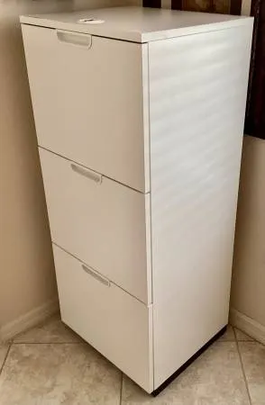3 Drawer Vertical File Cabinet. Solid hardwood birch and particleboard. White, complete melamine covering. Cabinet dimensions-Width: 201/8 , Depth: 173/4 ,H 8: 471/4 Width: 51 cm ,Depth: 45 cm ,H 8: 120 cmThe file drawers are easily adjusted and designed for letter-size and legal-size papers. New/Like new condition. If interested please text or call 816-255-5578 this cabinet is heavy. Cash only. North Naples-2 miles East of I-75 and Immokalee, turn right into Ibis Cove...