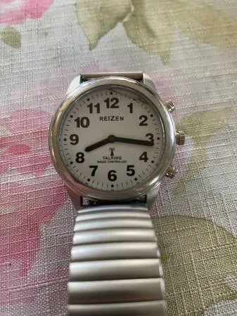 Mens Reizen Talking Radio Controlled Watch/wristwatch. The glass is not cracked in the picture. The second hand came loose and is in the top right hand corner. That’s what that line is in there. Only asking $10. 509-951-1571