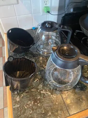 Glass pots for Mr. coffee, coffee makers. Also, they both have the containers that hold the coffee filter. 5.00, for either 1 of the pots with the coffee filter holder included. 509-951-1571.