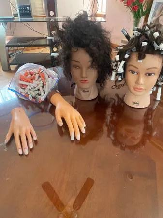 2 practice, mannequin heads for doing hair and make up and 2 hands for doing fingernails and permanent curlers. All for $30. 509-951-1571.
