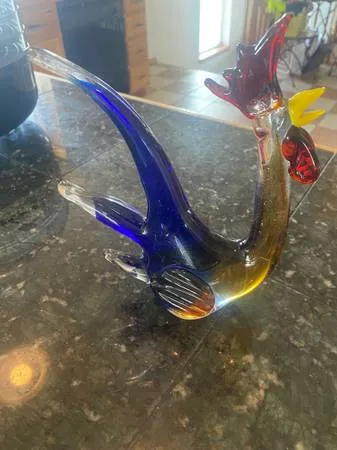 Vintage glass rooster. Has bubbles in it from when it was made. The measurements are in the picture. $20. 509-951-1571.