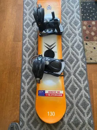 Snowboard with bindings. A couple of the straps on the bindings are broken. $40. 509-951-1571.
