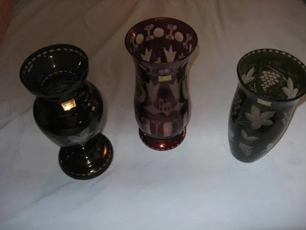 I have 3 etched Egermann Czech Bohemain Vases, 2 Green 1 Red, aprox. 10 inches tall. Like NEW condition....$60.00 each OR make offer for ALL. Thanks Due to Spam....... NO email, NO text...... CALLS ONLY.....419-472-8889.