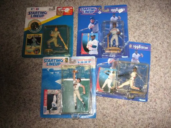 THE PRICES I HAVE LISTED ARE HALF OF BOOK PRICE.... WANT TO MOVE THEM. MAKE AN OFFER FOR , ALL .....THANKS Starting Lineup Figures 12 are out of the package, but in very good condition. They were displayed not played with.. BASEBALL Whitaker 1988 $20.00 Coleman 1989 $15.00 Boggs 1989 $20.00 Morris 1989 $17.00 Henderson 1989 $25.00 Mattingly 1989 $20.00 Clemens 1989 $10.00 Hernandez 1988 $25.00 Dawson 1988 $15.00 Morris 1988 $15.00 Davis 1988 $15.00 Gruber 1991 $8.00 Anderson 1997 $8.00 Gwynn 1998 $9.00 Vaughn 1998 $5.00 Nokes 1998 $8.00 HOCKEY Forsberg 1997 $5.00 Messier 1996 $10.00 Leclair 1996 $10.00 Kariya 1996 $8.00 Sakic 1996 $8.00 BASKETBALL Joe Smith 1996 $8.00 FOOTBALL Jerry Rice 1996 $10.00 Buy 1 or all.... if interested in all of them make an offer.....NO EMAIL OR TEXT CALLS ONLY. 419-472-8889..... Thanks for looking collectable, baseball, football, hockey, figures, toys, general
