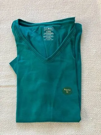 Brand new with tags L.L. Bean t-shirt. A birthday gift that wasn’t my style. Didn’t even try it on. Super nice teal color, v-neck, short-sleeve, womens size medium, 100 pima cotton. 2 nd image is from L.L. Bean website. Retails for $24.95 plus tax and shipping. $15. CALLS ONLY please to 503-358-6383. No texts. No email. From a non-smoking home. Thanks for looking.