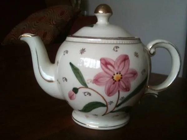 Beautiful mid-century porcelain tea pot made by Shawnee Pottery, in perfect condition to use or just display. Floral design hand-painted on cream background with gilt trim. Marked U.S.A on bottom. Pot with lid measures 6 tall and 10 wideincluding handle and spout. Super clean and no chips, cracks or repairs. Long-time owner, smoke-free home. $20. CALLS ONLY please to 503-358-6383. No texts. No email. Thanks for looking.
